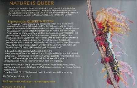 CSD Berlin 2018![]() ![]() Lützowplatz mit Stand Schwules Museum (das in der Lützowstraße zu finden ist) ![]() Angeführt von einer Lesbischen Gruppe ![]() ![]() Der offizielle CSD-Wagen: my body, my identity, my life ![]() ![]() Fahnen jeglicher Coleur.... ![]() ![]() Für mich einer der schönsten Momente... ![]() ![]() .... Denn es gab auch Seltsames! ![]() ![]() Berliner AIDS-Hilfe und Lambda geben sich Mühe... ![]() ![]() .. aber die Schwulenberatungmit der Lokomotive ist kaum zu toppen. ![]() ![]() Südamerikaner und Russen runden das Internationale und Politische der Demo ab. FormschönBeV & die amtierende Miss CSD Gaby Tupper beim Interview-Dreh im Schwulen Museum- im Web (27.7.18): > > www.facebook.com/SchwulesMuseum/videos/ ![]() ![]() Auch besonders: Poster für Filmworkshop Queere Insekten. Musste ich fotografieren - Eingangsbereich SMu ![]() ![]() Li: Gedenkmarsch der BAH Re: Kaffeesonntag in der AHA ![]() ![]() Foto von der Vernissage Ausstellung Ovo Maltines Altar 2016 und eine Zeichnung die im Museum Ehrenamtler 2018 portraitiert. ![]() ![]() ![]() Teddy Award auf der Berlinale 2018: BeV und Axel im fast Partnerlook - Geschichtsführung im SMu mit Tunte BeV - Hirschfeld Ehrung inm Haus der Kulturen der Welt |