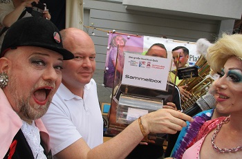 Lesbisch-Schwules Stadtfest 2018![]() ![]() ![]() Gaby Tupper am Glücksrad, Nackedei aus der AHA und mit Wieland Speck - my dear, we are so Beautyful.... ![]() ![]() Mit Schwester Daphne und Mr. Leather, als Glücksfee mit live Radio, 1000 Flyer mit moi Gemeinschaftsstand vom SMu, AHA und OSPI Sei Museum![]() Mit Wieland Speck bei der Venissage: 40 Jahre CSD-Fotos von Rolf Fischer, Oktober 2019 ![]() ![]() Ausstellung zum Film "Anders als die Anderen" 1919 & Vernissage Trans Trans ![]() Mit Wilhelm Hein bei der Fotoausstellung von Annette Frick im Märkischen Museum mit grosser Tuntenshow im Oktober 2019 ![]() 1992 BeV bei Act up Berlin, 1993 bei Beerdigung Jürgen Baldiga (BeV re. in Stiefeln) / Fotos Annette Frick Das linke Foto ist in der Novemberausgabe der Siegessäule |