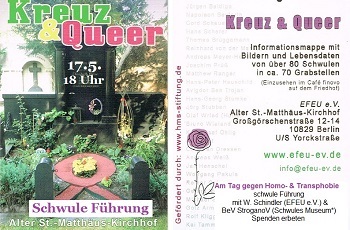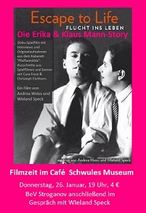 Januar![]() ![]() ![]() Filmabend im Schwulen Museum*26.1.2017, 19 Uhr Dokumentation: Erika & Klaus MannAnschließend BeV im Gespräch mit Filmemacher Wieland Speck (Direktor Panorama / Berlinale) und BeV mit Ryan Stecken (Mitorganisatorin des "Orlando-Gedenken" am Brandenburger Tor ![]() Vorprogramm mit Info-Diashow ![]() ![]() Eine Verneigung vor dem größten Aids-Benefiz ever: der Life Ball in Wien Motiv re.: Hirschfeld-Institut / mit Conchita Wurst - Im Hintergrund Foto von der "Bücherverbrennung" Eine Posterreihe Life Bible vom "Life Ball 2017" mit Motiven aus den 20er/30er Jahren (nach Gemälden von O. Dix, Lolita Lempicka etc.) Wir sammeln für einen Druck von 11 Motiven, um diese im Schwulen Museum auszustellen! Künstlerisch und Gesellschaftspolitisch einfach toll. So wie das Benefiz am 10. Juni 2017 >> lifebible.org Die Bild er>> lifeball.org Der Event (Ausstellungen siehe unten: Teddy Award / Berlinale 2017 & Schwules Museum* 29.3. - 1.5.17) |