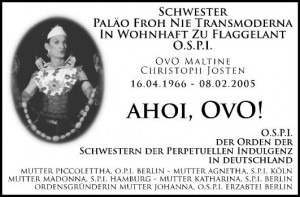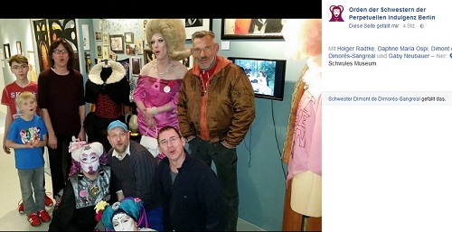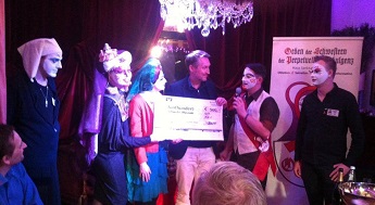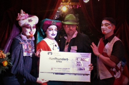 Frühlingsempfang des Ordens der Schwestern der Perpetuellen Indulgenz OSPI 25.2.2017 li.: Spendenausschüttung an Kevin für das Schwule Museum* und re.: an BeV für den Friedhofsförderverein EFEU e.V. - schwules Projekt "Kreuz & Queer" je 500 € |