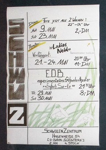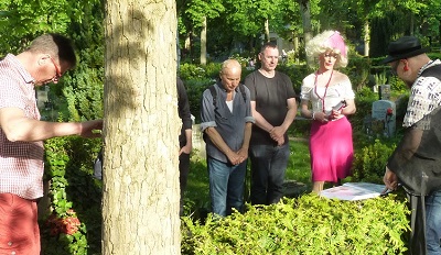 ![]() ![]() „ğ – das weiche g“ - queere Formen migrieren Gruppenausstellung von: Aykan Safoğlu, Ayşe Erkmen, Cihangir Gümüştürkmen, Erinç Seymen, Hasan Aksaygın, Masist Gül präsentiert von Banu Cennetoğlu und Philippine Hoegen, Mehtap Baydu, Ming Wong, Nilbar Güreş, Taner Ceylan, Viron Erol Vert, Yeşim Akdeniz Kuratiert von Emre Busse und Aykan Safoğlu ![]() ![]() Schlange vor dem Museum* Wieder als Dokumentaristen* unterwegs: Gaby Tupper und BeV StroganoV ![]() >> Youtube: BeV im Radiointerview 26.3.2017 Gespräche über Schwules Museum*, Tuntenmuseum online, Ovo, etc..... 8.9.2016 bis 1.5..2017 Installation zu Ovo Maltine (16.4.1966 - 8.2.2005) im Schwulen Museum* April![]() ![]() ![]() ![]() ![]() Tunten-Tee an Ostersonntag - Geburtstagsdatum von Ovo (das Ei) >> Ovo Website >> facebook Video Schwules Museum Gabi Tuppert und Tima zu Ovo-Installation Mai![]() ![]() ![]() li.: meine erste Schicht im Museums-Café mi. + re.: Sommergestecke für die Caféterasse - Blumentöpfe von Ovo Maltines Beisetzung 2005 ![]() ![]() Schwule Friedhofsführung mit BeV StroganoV als Mitarbeiter Archiv Schwules Museum* 17.5.2017 - Tag gegen Homo- & Transphobie re.: am Grab von Jürgen Baldiga & Manfred Salzgeber ![]() ![]() Erstmalig im Fummel auf Alter St.-Matthäus-Kirchhof, hier mit Gaby Tupper (die Blonde), re. am Grab von Ovo Maltine ![]() 22. Mai: Museumstalk Gaby Tupper & BeV vor Liebespaaren >> Youtube - Schwules Museum* Gaby Tupper interviewt BeV ![]() ![]() Erste Tuntenführung mit BeV StroganoV - alles immer auch eine Frage des Standpunkts ![]() ![]() 13. Juli: Diskussion und Screening mit Jochen Hick (li.) "Mein geliebtes Westberlin" - Zum Thema AIDS/Act up ein Filmausschnitt mit BeV 1989 (wer hätte sie erkannt?) Lesbisch - Schwules Stadtfest 2017 ![]() ![]() Dekoration und Gewinnspiel - 16 Namen den Postkarten des Museums zuordnen (BeV bastelt eben gerne) ![]() ![]() Straßenfeststand Schwules Museum* mit Doppelinterview: Radio Queer live & Museumsvideo für Youtube / Abbauimpression ![]() ![]() ![]() ![]() Straßenfest Dekorateur*in Tante BeV - Gay Night at the Zoo BeV & Axel vom Archiv - CSD 2017: BeV & Margot - Museums-Kollegen ![]() ![]() ![]() Odarodle - Motzstraßen-Performance & Parade zur Ausstellungseröffnung am 20. Juli 2017 ![]() ![]() ![]() Ausstellungstitel "Odarodle" ist andersrum "Eldorado" (BeV wieder mal ganz unpassend gekleidet) > Sonderseite BeV: Schwules Museum 2016 ![]() ![]() ![]() Polymorphia 19.5.17: Vortrag Futura (Dirk Ludigs war 1985 bei "Ladies Neid") mit Musikbeispielen von der verstorbenen Daliah Lavi und erster Auftritt von Dirk (Museums-Büro) ![]() ![]() Mitarbeiter Schwules Museum* on Tour ![]() Geena und Janis als die "Homolulus" (Dirks Showgirls*) ![]() ![]() Axel Wimpernmann als "das Mädchen mit den Handschuh-Ohrringen" (Foto: das BeV) und BeV StroganoV mit Strohhalm-Helm (Foto Renate Wanda de la Gosse) ![]() Fast wie ein Betriebsausflug: Es waren 10 Museums-Kolleg*innen dabei... ![]() ![]() Museal - Ausgestelltes im SchwuZ: Poster vor 30 Jahren (Gemalt von BeV 1987) Großfoto von Jürgen Baldiga im Naßbereich ![]() ![]() BAH-Trauermarsch am Sa. 21. Mai - Moi halbprivat - Gaby trägt meine "Rote Schleife" >> bevstroganov.wix.com/tuntenmuseum www.kenb.org/Tuntenmuseum Intro BeVs animierte Tuntensite mit Links zu youtube & Sonderseiten Website von BeV StroganoV mit Links ![]() Tunten Tea-Time um 1780 |