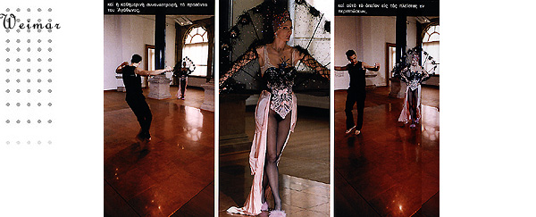 ![]() ![]() Geklöppelter Pfau Desirée Nick in meinem Pfauenkostüm von mir (gehäkelt) im Schloss Weimar 2000/ Fotos: Dimitrios Antonitsis |