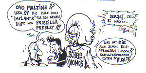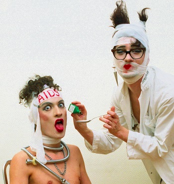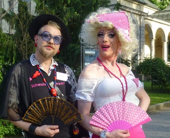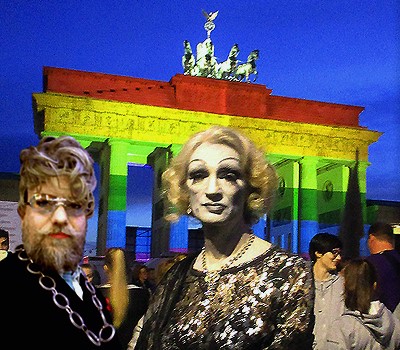 ![]() ![]() li.: Ovo und BeV vor dem von Cristo "Wrapped Reichstag" (Foto: Daniel Fuchs 1995/ coloriert von BeV) re.: das Ovo lässt sich von Dr. BeV Jodtinktur verabreichen.....1994 (Foto Rolf Fischer) ![]() ![]() Schwule Friedhofsführung am 17. Mai 2017 zum Grab von Ovo (Tag gegen Homophobie - BeV mit Gaby Tupper) rechts: Halloween im Schwuz 2017 |