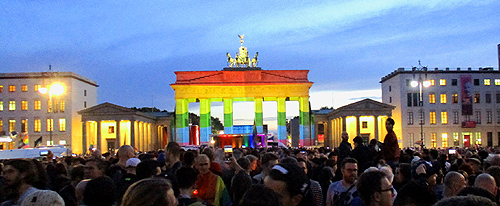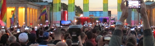 ![]() Ein Symbol von "Einheit" Brandenburger TorGedenken der Attentats-Opfer von Orlando, USA 12.6.16Berlin, 18. Juni 2016![]() "Imagine all the people.." Diese Seite des Tors gehört uns (dahinter die Leinwand für die Fußballübertragungen EM 2016, Paris) |