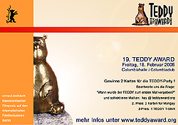 Teddy-Anzeige 2005 In diesem Jahr hatte ich mit Stefan und Kai ein neues Design für die Webseite vom Teddy Award erstellt. Mawi übertrug dieses auf die Anzeigengestaltung. |