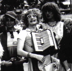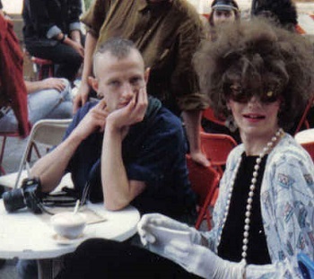 ![]() ![]() Der Fotograf Jürgen 1997 bei BeVs Modenschau vor dem Café Swing auf dem Nollendorfplatz |
