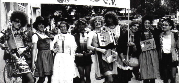 Mehr Fotos von Jürgen: ![]() Ladies Neid beim CSD 1987 als Bayerische Emigrantinnen ![]() BeV StroganoV 1986 ![]() ![]() BeV & Ichgola - Postkartenserie Ladies Neid "Tunten & Karten" mit Fotos von Jürgen Baldiga ![]() ![]() Melitta Poppe & Rückseite mit Logo |